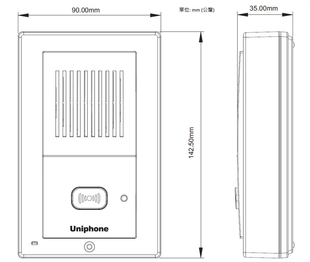- 可搭配 Uniphone 各型交換機門口機卡及單機卡,裝置於門口通話及作緊急對講機使用。(可被廣播)