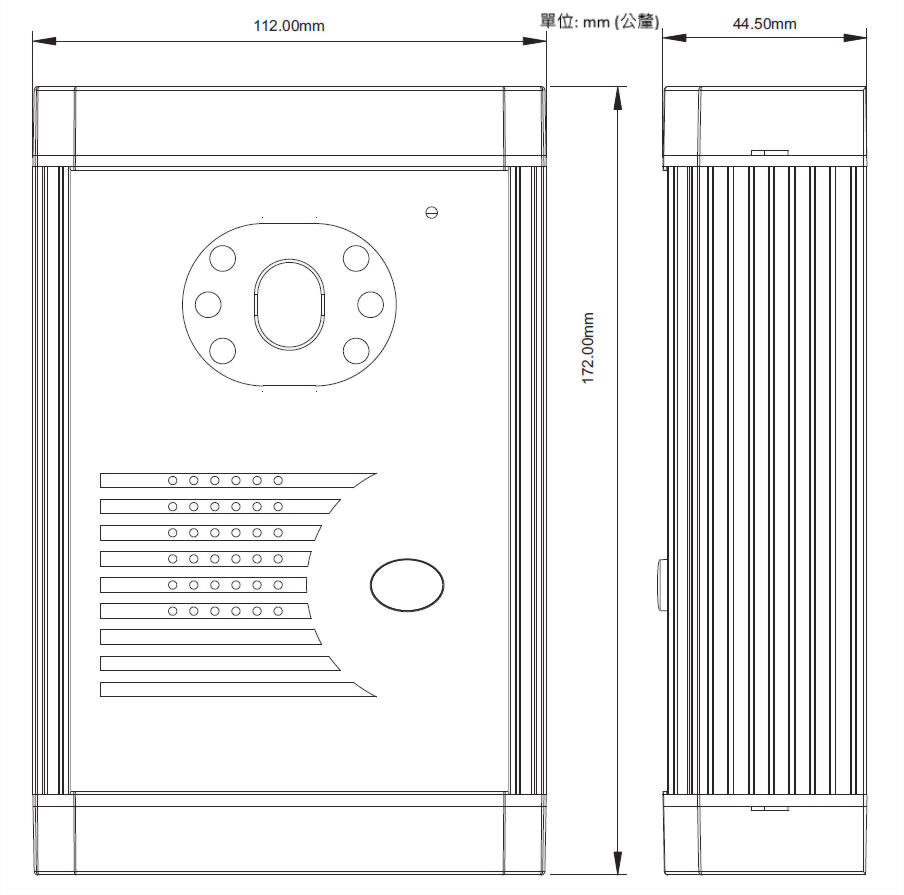 - 門口機尺寸: 172x112x44.5 (mm) (長x寛x深)
